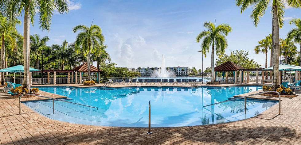 Spacious two-bedroom, two-bathroom villas feature full kitchens, open living and dining areas, in-unit laundry, and private balconies with golf course or lake views. Guests enjoy a large outdoor pool, whirlpool spa, fitness center, and access to nearby restaurants, retail centers, and entertainment throughout the Miami area. Whether you're teeing off in the morning or exploring Miami’s nightlife in the evening, Villas at Doral offers a well-rounded Florida getaway.